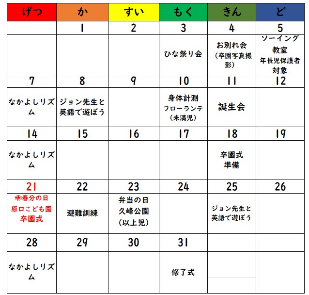 3がつの園の予定