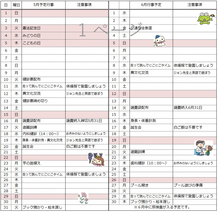 5月・6月の園の予定