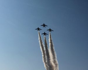 天候や風などの影響もあり、毎年確実に見れるわけではありません。だからこそ、青い空にブルーインパルスの描く模様が、綺麗に浮かぶと余計に感動しますよね。日曜日は休業日ですので、当日に事業所から見たことはありませんが、タイミングよく当番勤務が前日の練習の日に重なると見ることができます。
