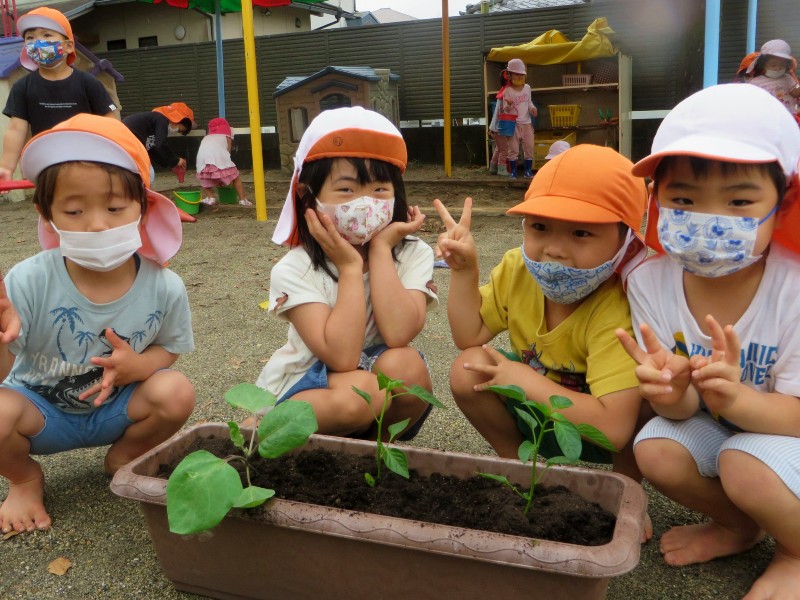 植えた時の写真はこんなに小さかった・・・。「おおきくなーれ、おおきくなーれ」と願いを込めて、毎日頑張ってお世話をしました。