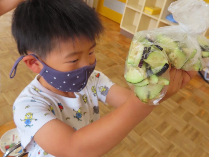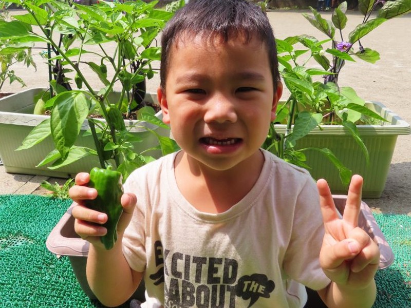自分で育てて収穫したなすびとピーマンはとても美味しかったようです☆☆