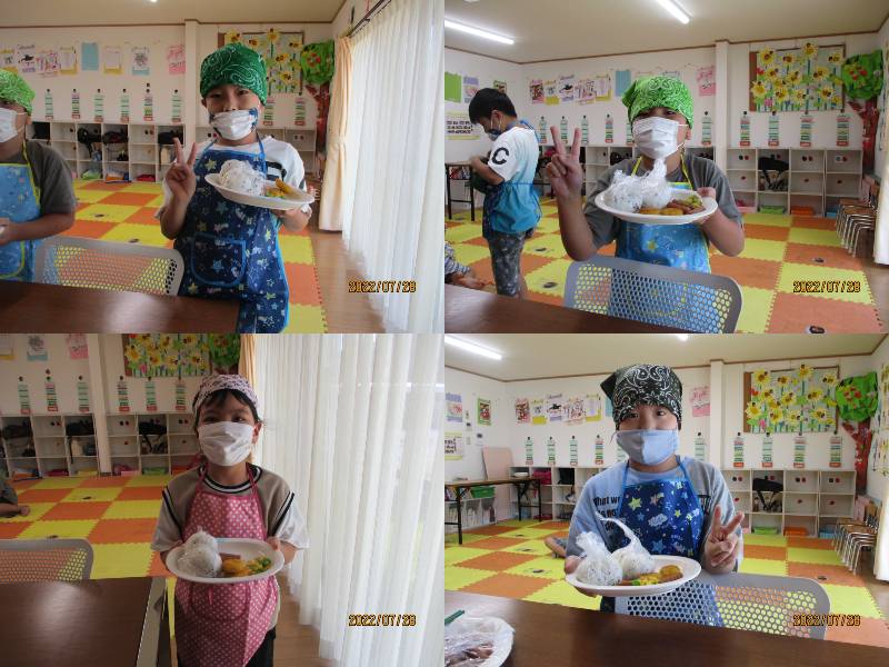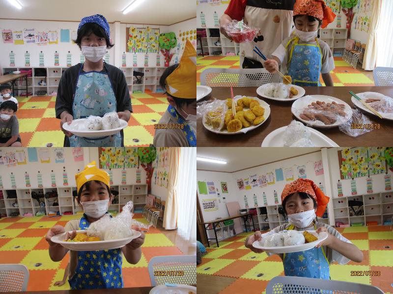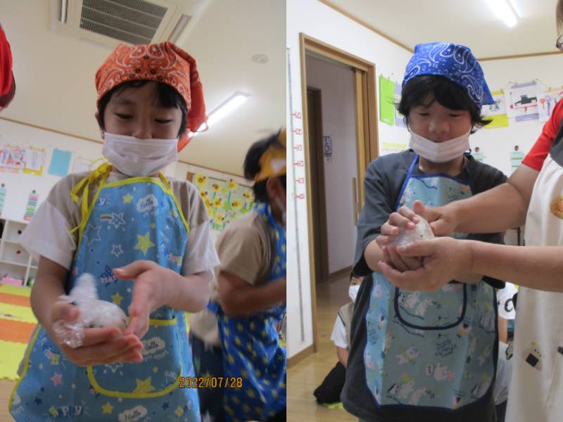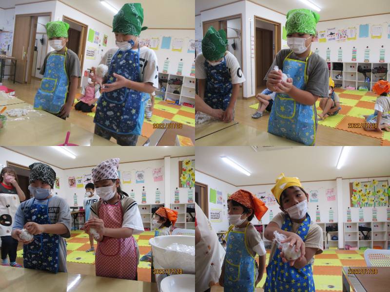おにぎりは職員が他にも予備で何個も作ったのですが、殆どの子がおかわりして、中には自分のおにぎりを合わせて4個食べた子もいました