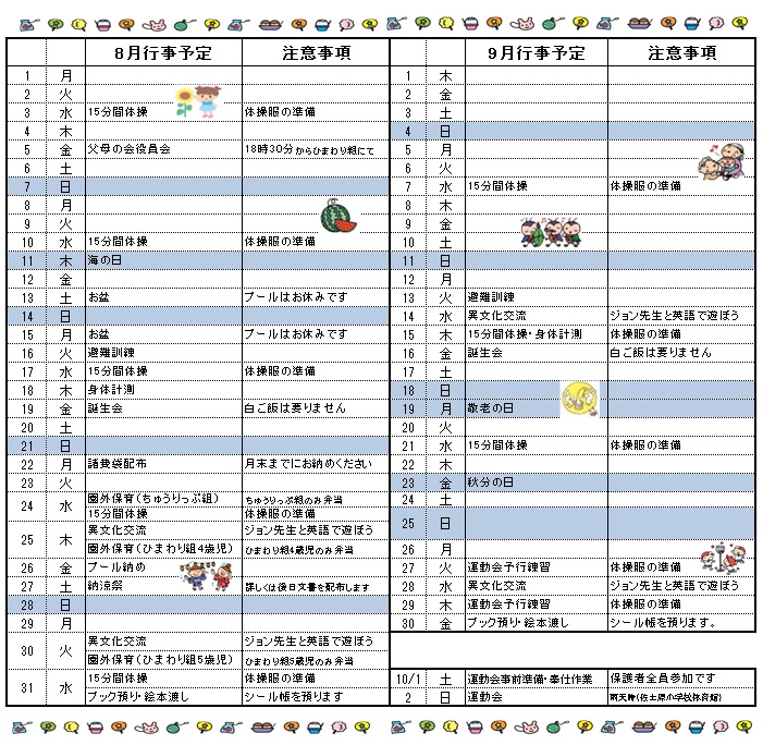 9時までの登園をお願いします。