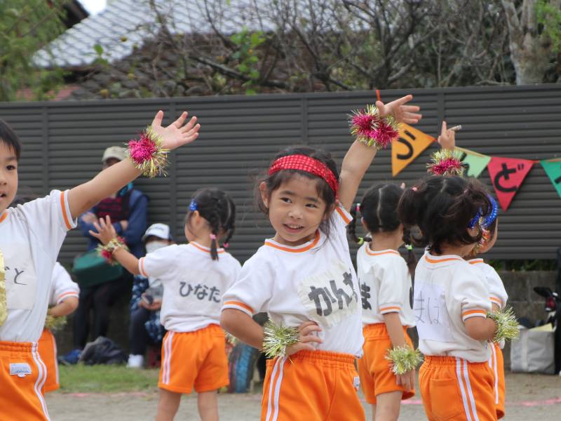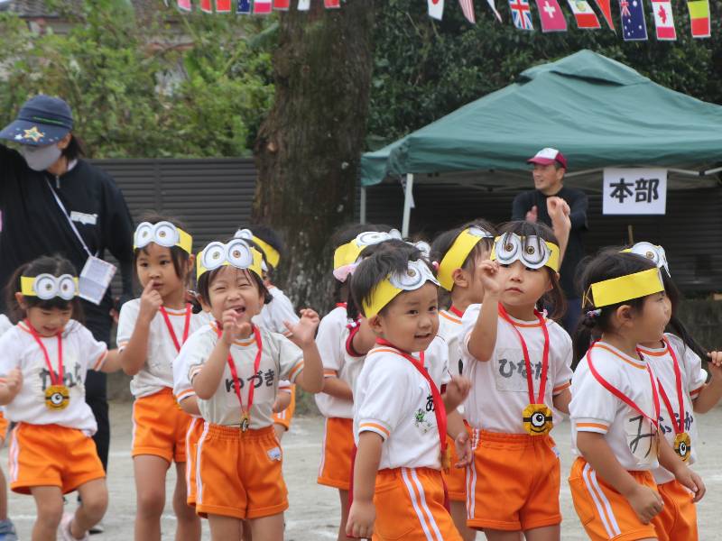 秋空のもと運動会が行われました。遊戯にかけっこなど最後まで一生懸命頑張って参加しました。たくさんの応援ありがとうございました。