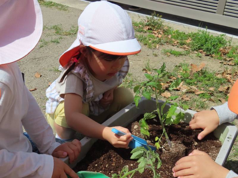 花の苗植えをしました。収穫まで大事にお世話していきます。クッキング何にしようかなぁ…