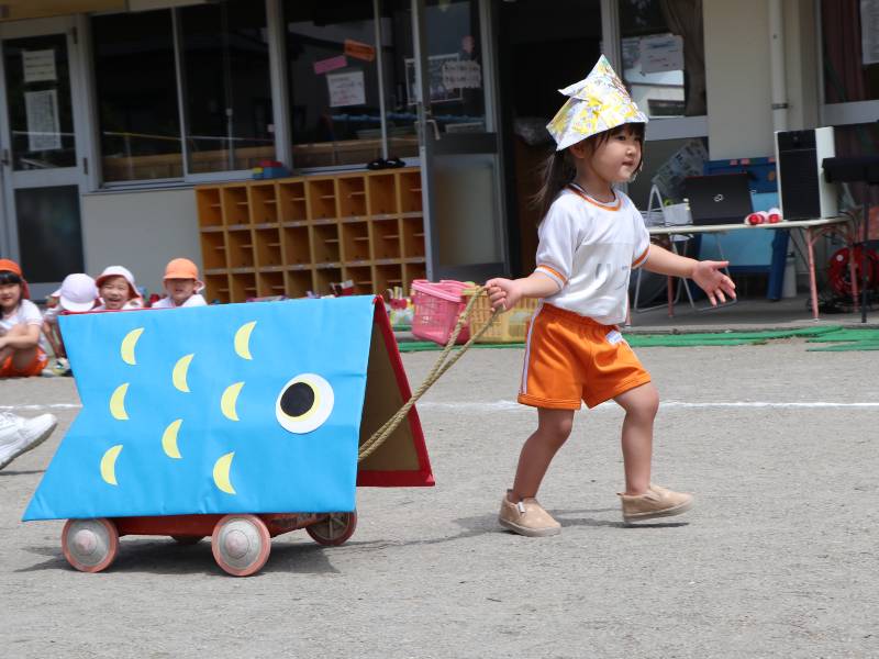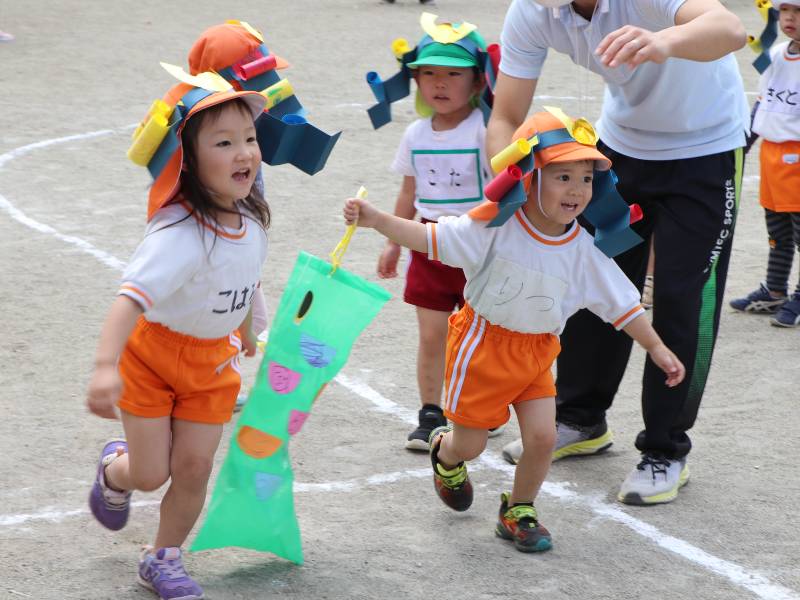こいのぼりの集いがありました。こいのぼりを使ってリレーをしたり、障害物競走をして楽しみました。各クラスいろいろな兜が披露されました。大空に泳ぐこいのぼりのように元気に大きく成長していってね。